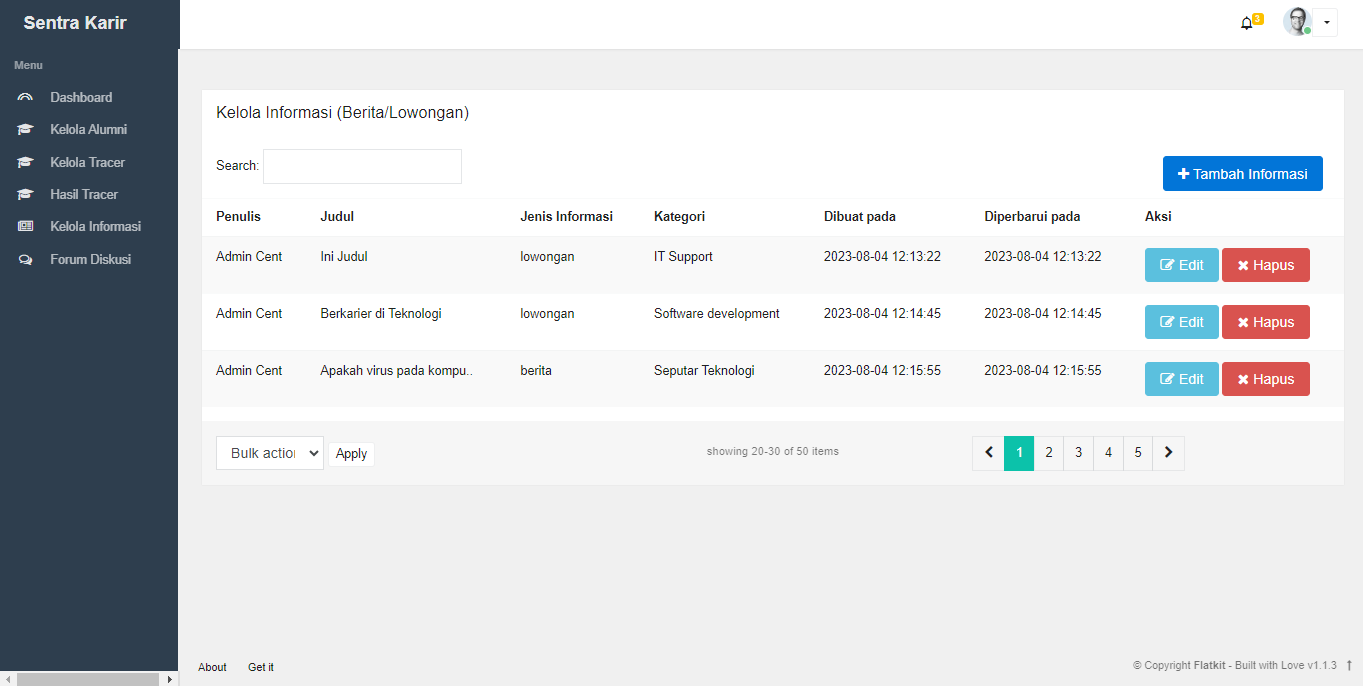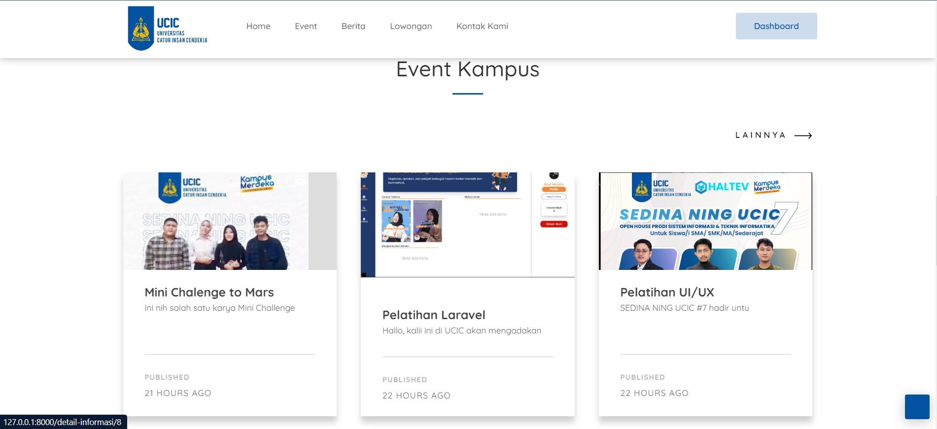 The Career Center Information System at Catur Insan Cendekia University is a web-based application developed using the Laravel Framework (PHP) and MySQL database. The system has two main roles: